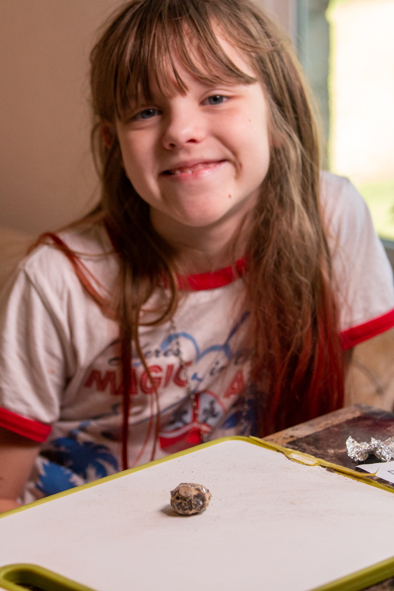 Finally, it was time for SCIENCE! All day, we had been having little “bird breaks”, learning about owls, mostly, and what owl pellets are and how they are formed. A few weeks ago, I had contacted a local organization, Blackland Prairie Raptor Center, and ordered several owl pellets to dissect. A has been so excited to look at them and see what we would find inside. We started out using tools to carefully open and pull apart the pellets, but by the end, we were digging in with our fingers, laughing about the number of vertebrae and rib bones and making up our own song about owl pellets.